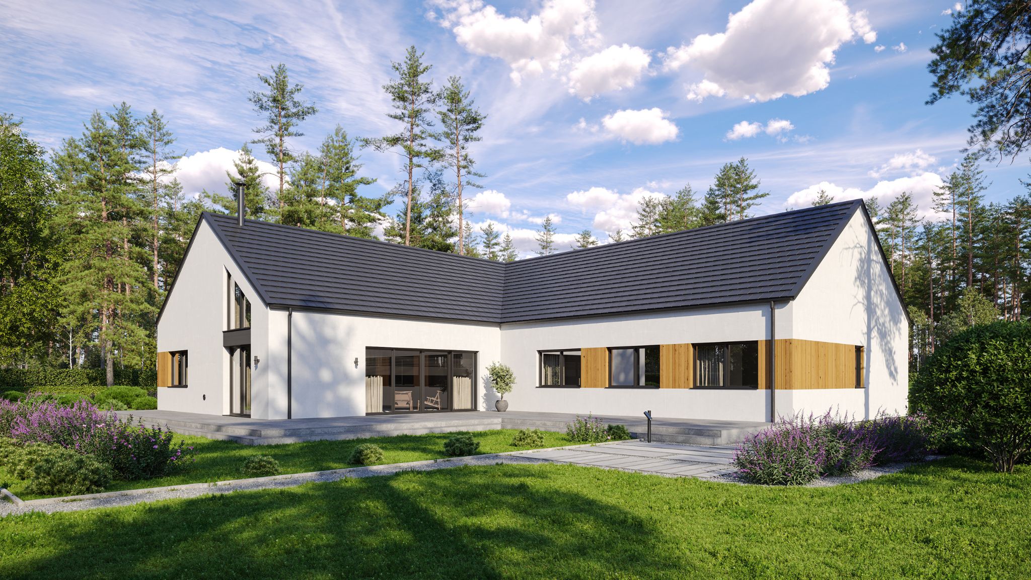 Projekt stawia na komfort i funkcjonalność bez kompromisów. Duża powierzchnia użytkowa daje poczucie przestrzeni, a logiczny podział wnętrza sprzyja zarówno wspólnemu spędzaniu czasu, jak i zachowaniu prywatności domowników.