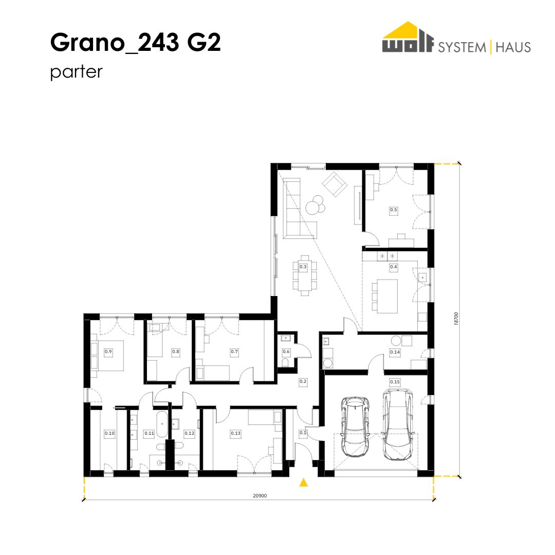 Dom Grano_243 G2 to projekt o imponującej powierzchni 242,68 m², zaprojektowany z myślą o inwestorach, którzy oczekują przestrzeni, komfortu i możliwości indywidualnej aranżacji wnętrz.