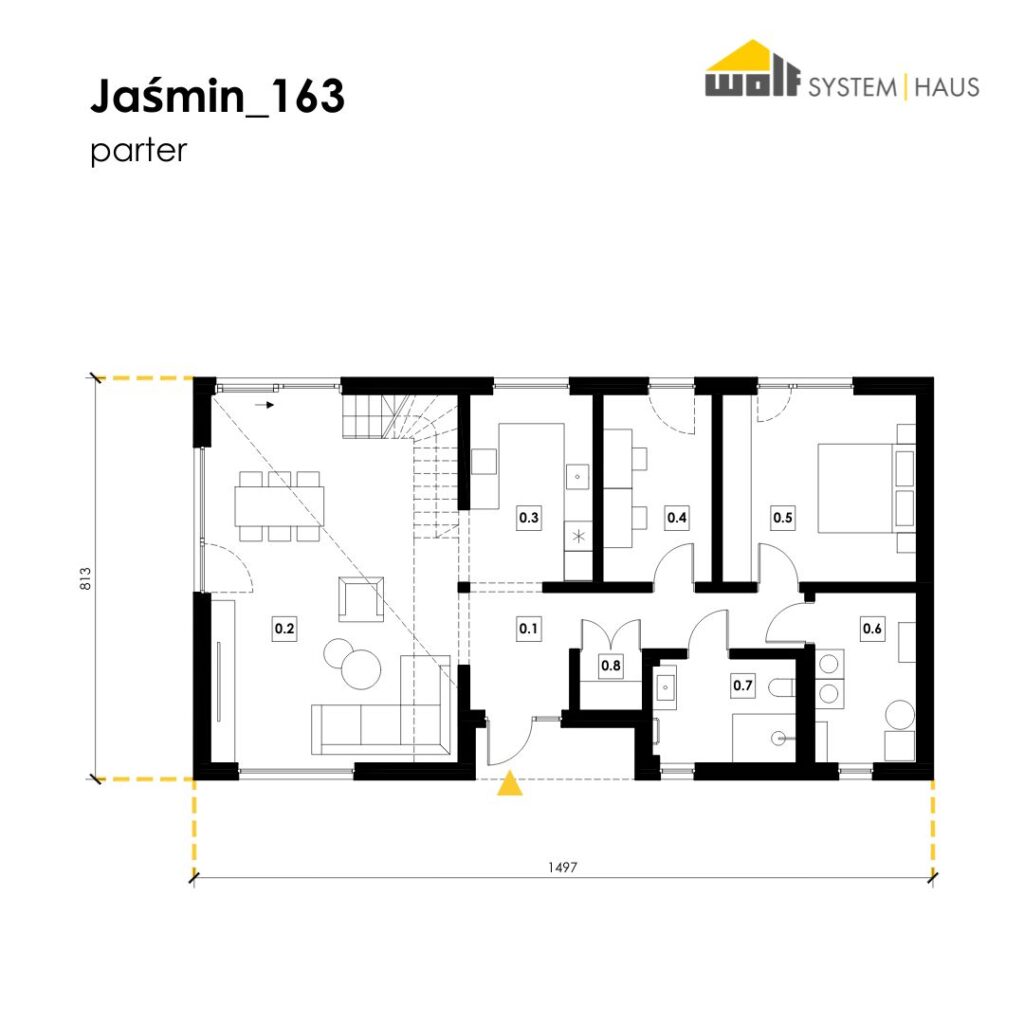 Jaśmin_163 to nowoczesny, minimalistyczny dom o powierzchni 163,97 m², który doskonale odpowiada na potrzeby współczesnego stylu życia. Idealnie sprawdzi się w przypadku, gdy domownicy pracują zdalnie. Przemyślany układ pomieszczeń pozwala na wygodne wydzielenie strefy do pracy, bez zakłócania codziennego rytmu pozostałych mieszkańców.