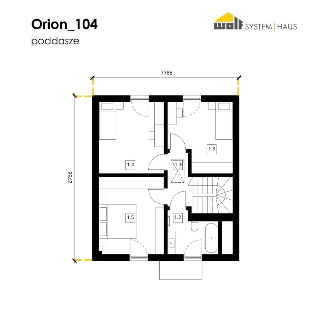 Wymiary budynku: 7,79 m x 8,76 m