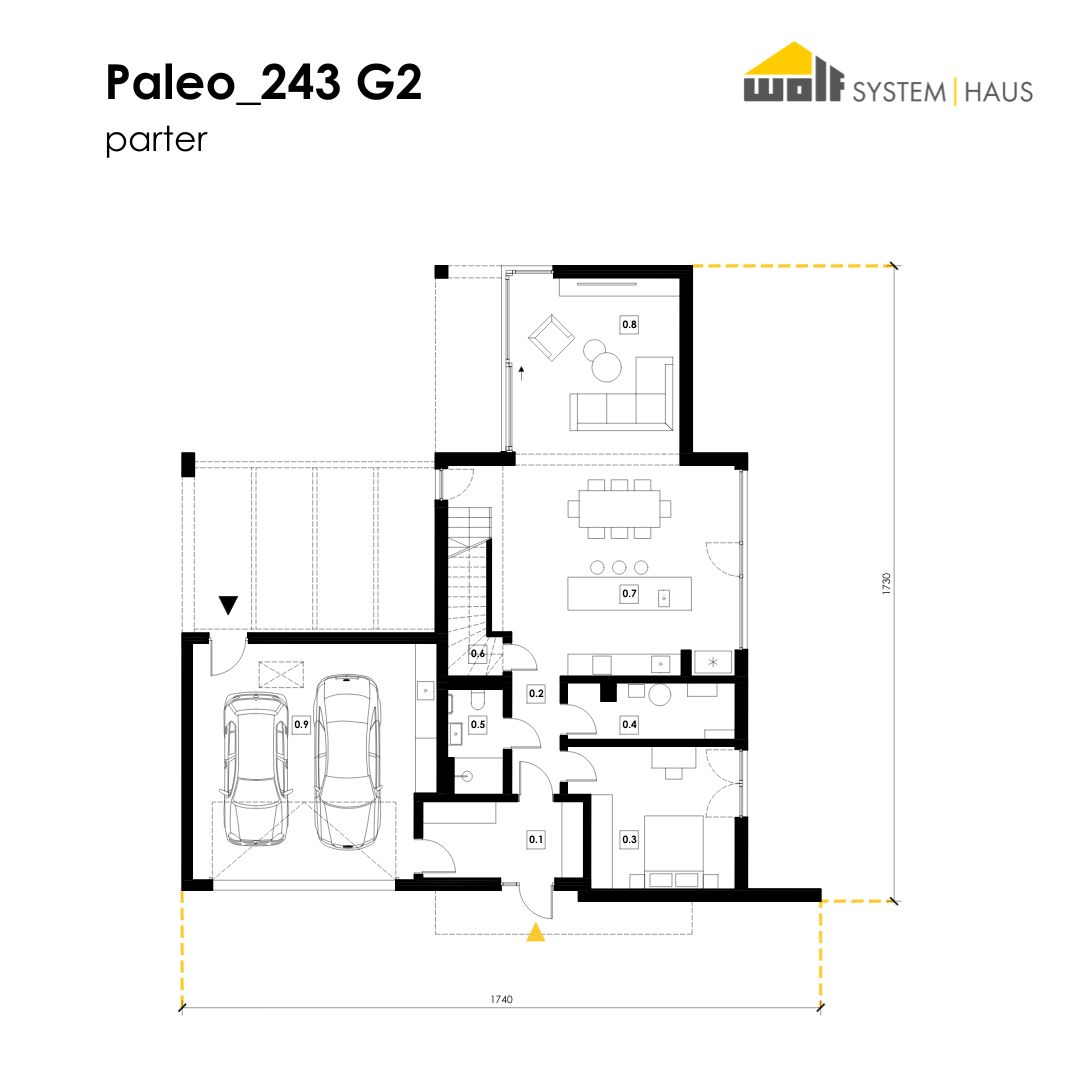 Paleo_243 G2 to dom, łączący odważną architekturę, dużą powierzchnię i funkcjonalny układ wnętrz.