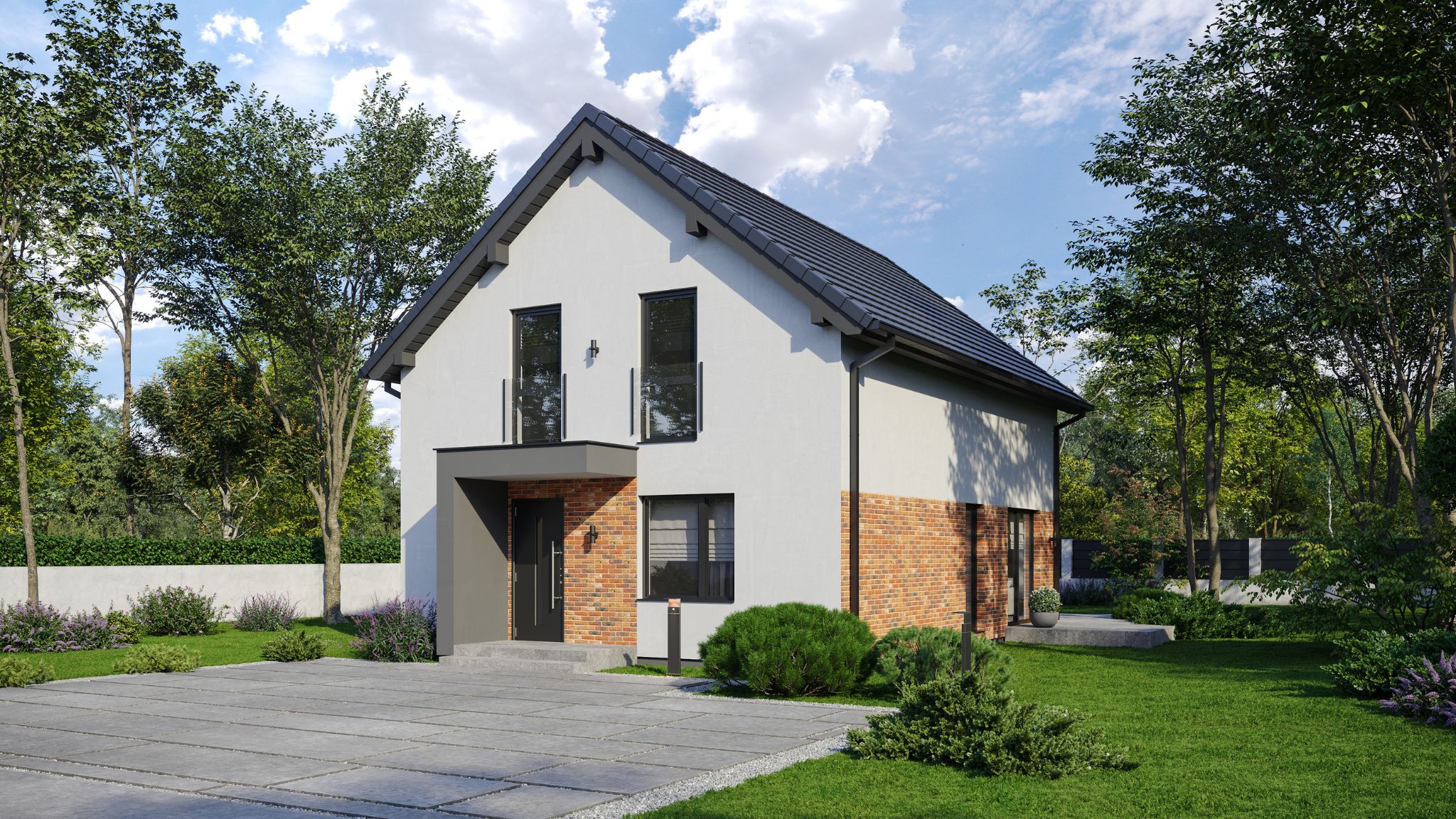 Winston_122 to dom o powierzchni 122,55 m², który wyróżnia się ponadczasową, klasyczną bryłą oraz starannie zaplanowanym układem wnętrz. Prosta forma budynku nadaje mu elegancki, uniwersalny charakter, dzięki czemu doskonale wpisuje się zarówno w tradycyjną, jak i nowoczesną zabudowę.